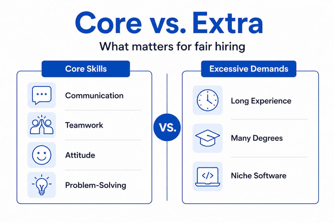 The distinction between "nice to have" and "must have" matters enormously. Employers often write listings based on their ideal candidate rather than their minimum viable hire. The result? Lists of 12 qualifications when 4 would do.