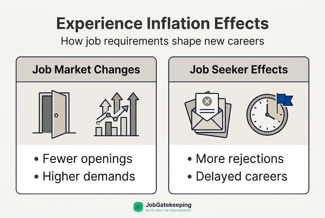 Beyond the field-level data, the personal cost of experience inflation is real. Job seekers spend more time applying, face more rejection, and often accept roles well below their skill level just to build the resume employers want. This delays financial independence, career growth, and professional confidence.